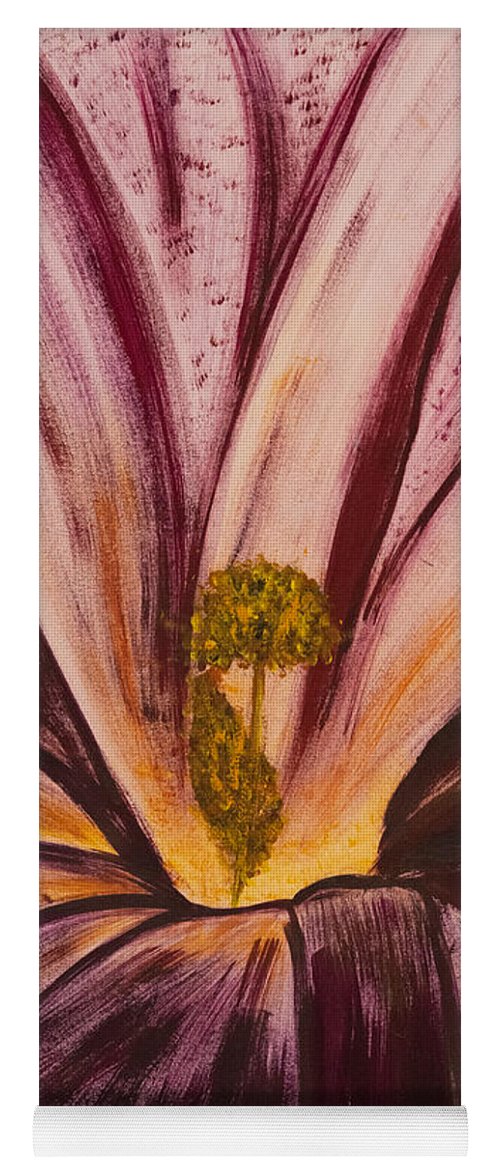 Our premium yoga mats are 24" wide x 72" tall x 0.25" thick and made from natural rubber with a blended microfiber top surface. The top of the mat has the image printed on it, and the back is solid black with textured dimples for better floor grip.